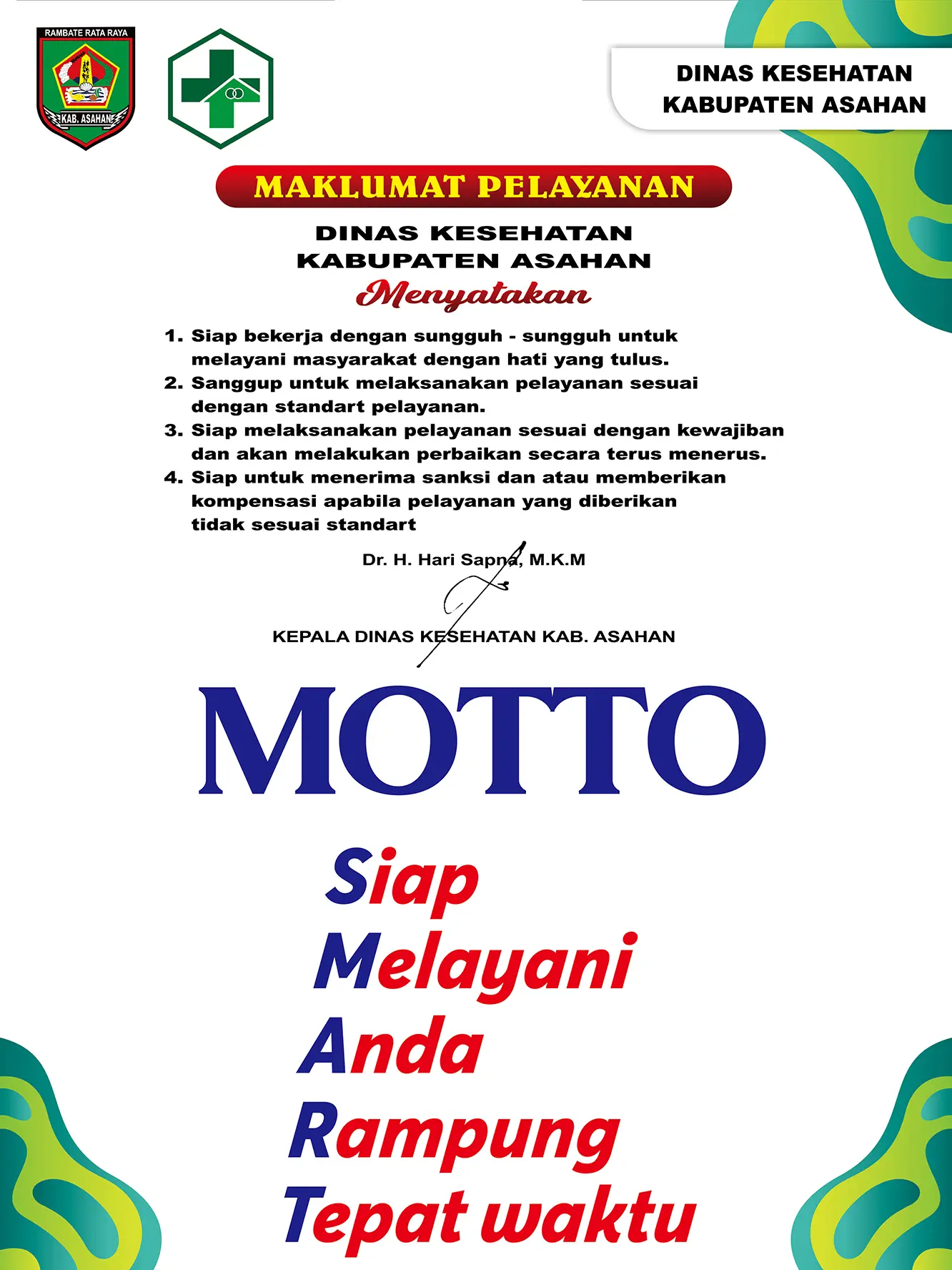 Dinas Kesehatan Kabupaten Asahan mengucapkan “SELAMAT ATAS PELANTIKAN PRABOWO SUBIANTO DAN GIBRAN RAKABUMING RAKA” sebagai Presiden dan Wakil Presiden Republik Indonesia.